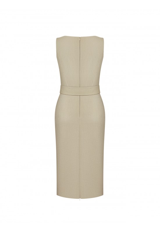 Ділова міді сукня з поясом – ідеальний вибір для елегантного бізнес-образу жінки. Виконана з високоякісної костюмної тканини зі структурою «ялинка» (віскоза 65%, вовна 35%), підкладка з натуральної віскози забезпечує комфорт. Таймлес силует та влучний крій роблять цю сукню універсальним елементом ділового гардеробу. Пояс підкреслює талію, довжина міді – класична та доречна для офісу та бізнес-подій.