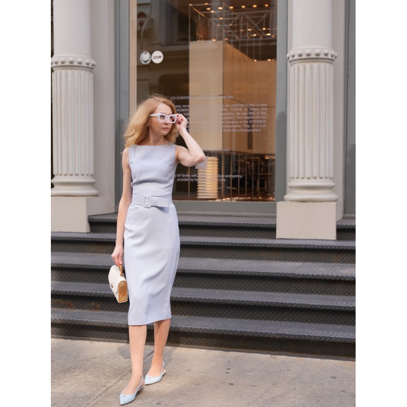 Блакитна сукня міді з поясом