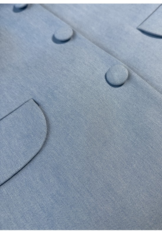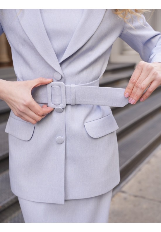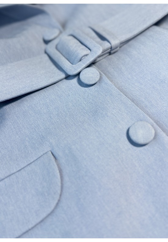 Класичний діловий жакет з поясом – ідеальний вибір для елегантного бізнес-образу жінки. Виконаний з високоякісної костюмної тканини зі структурою «ялинка» (віскоза 65%, вовна 35%) і підкладкою з віскози та шовку для комфорту. Таймлес силует, ідеальний крій та два варіанти кольорів – теплий беж і блакитний – створюють універсальний базовий елемент капсули для ділового гардеробу. Пояс підкреслює талію, жакет чудово поєднується з діловими спідницями та сукнями.